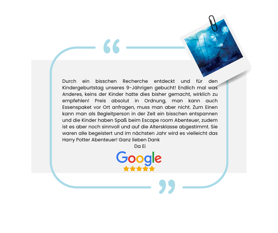 - Bucht den Termin mind. 3 Tage im Voraus, da wir vorab die Rätsel entsprechend anpassen müssen!